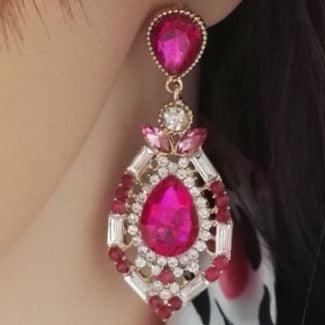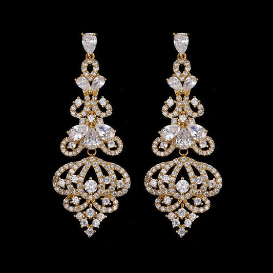Long Cubic Zirconia Crystal Earrings Bridal Chandelier Earrings