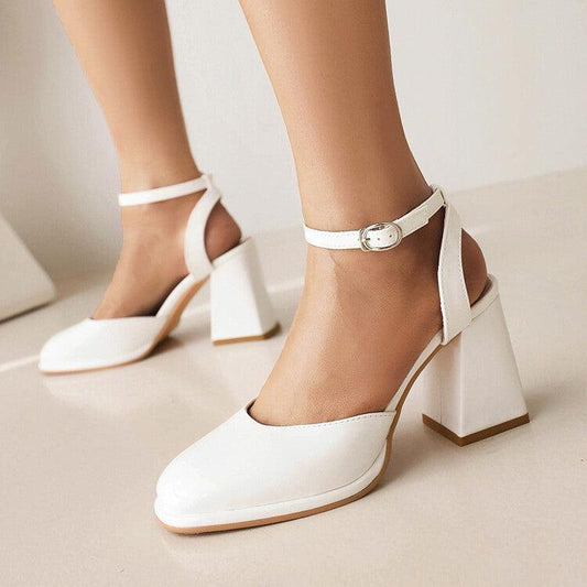Mary Jane Womens Chunky Block Heels Ankle Strap Shoes