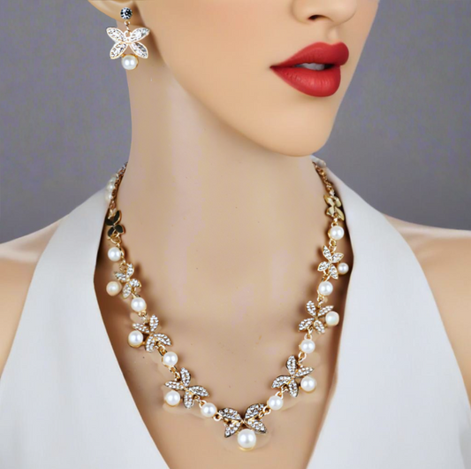 Elegant Pearl Butterfly Bridal Jewelry Set: Necklace & Earrings