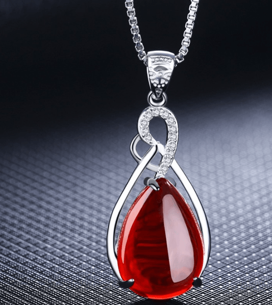925 Silver Necklace Green or Red Chalcedony Pendant